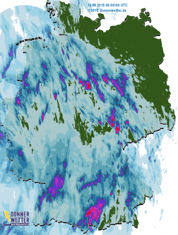 Schwere Gewitter wurden westlich von München beobachtet. Auch im Osten von Niedersachsen und in Sachsen-Anhalt gab es schwere Gewitter mit großen Regenmengen. Berlin und Brandenburg blieben trocken.