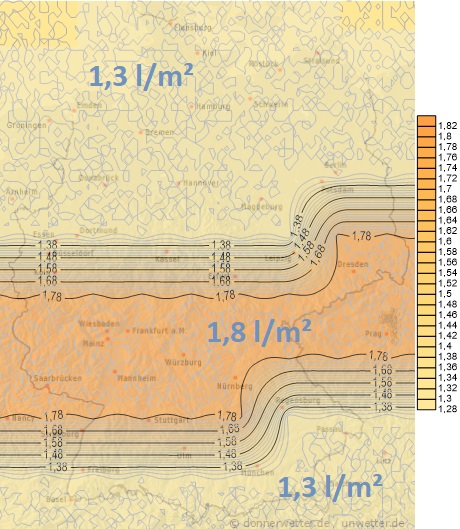 Tatsächliche Verdunstung in Liter pro m²