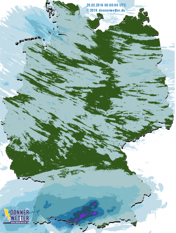 Einzelne Spuren von Schneeschauern ziehen über ganz Deutschland. Die Regenmengen waren aber gering. Nur an den Alpen schneite es stärker. Heute gibt es auch kaum Schnee und Regen.