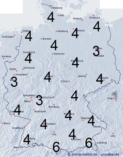 Eine Hochdruckzone über Mitteleuropa sorgt für freundlicheres Wetter. Die Schauer lassen nach, Benetzung entsteht aber durch nächtlichen Strahlungstau und Nebel. Die Benetzungsdauer erreicht dabei allgemein zwischen 3 und 6 Stunden.