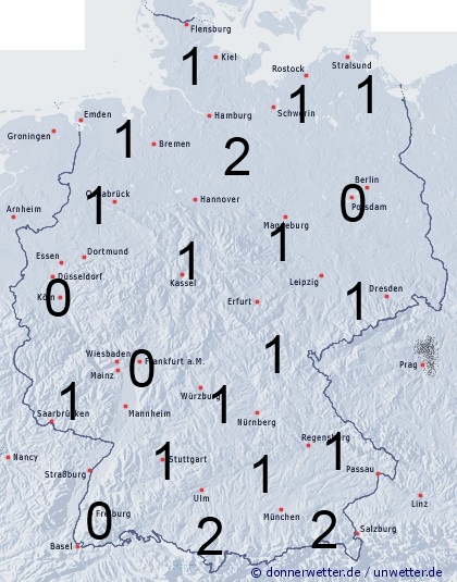 In Deutschland herrscht freundliches und trockenes Sommerwetter. Leichte Benetzung entsteht nur durch nächtlichen Strahlungstau.