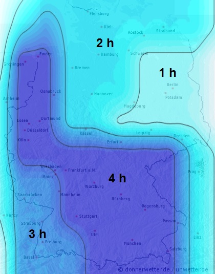 Wir stellen die Blattbenetzung generell in Stunden pro Tag auf der Karte dar. Durch die Lage des Feldes kann die Benetzungsdauer allerdings variieren.