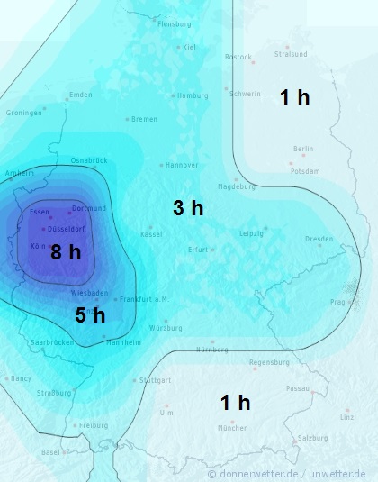 Wir stellen die Blattbenetzung generell in Stunden pro Tag auf der Karte dar. Durch die Lage des Feldes kann die Benetzungsdauer allerdings variieren.