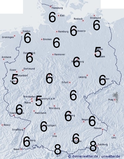 In Deutschland herrscht freundliches und niederschlagsfreies Frühsommerwetter. Benetzung entsteht nur durch nächtlichen Strahlungstau. Die Benetzungsdauer liegt allgemein zwischen 5 und 8 Stunden.