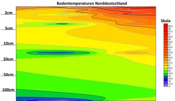 Bodentemperaturen vom 16.08.2016 bis zum 23.08.2016, für den Norden Deutschlands.