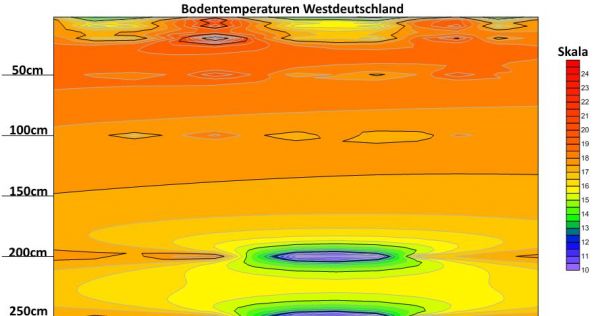 Bodentemperaturen vom 26.07.2016 bis zum 23.08.2016, für den Westen Deutschlands.