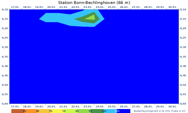 In den obersten zwei Metern Bodenschicht sind derzeit zwischen 600 und 700 l/m² Wasser gespeichert.