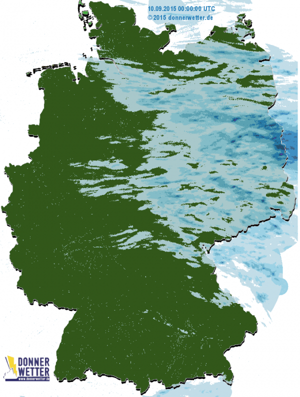 Nur in Brandenburg gab es durch Schauer eine Regenspende von mehr als 1-2 l/m2, sonst tröpfelte es etwas, aber die Mengen waren mit unter 1 l/m2 eher gering.