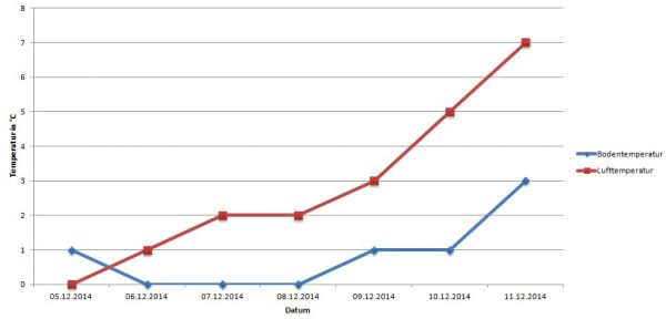 Durchschnittliche Boden- und Lufttemperaturen bis Ende nächster Woche.