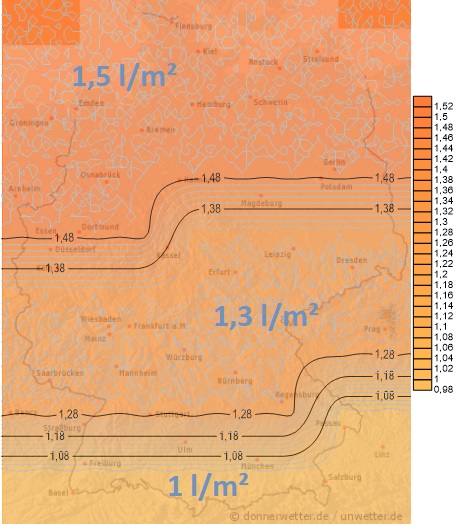 Tatsächliche Verdunstung in Liter pro m²