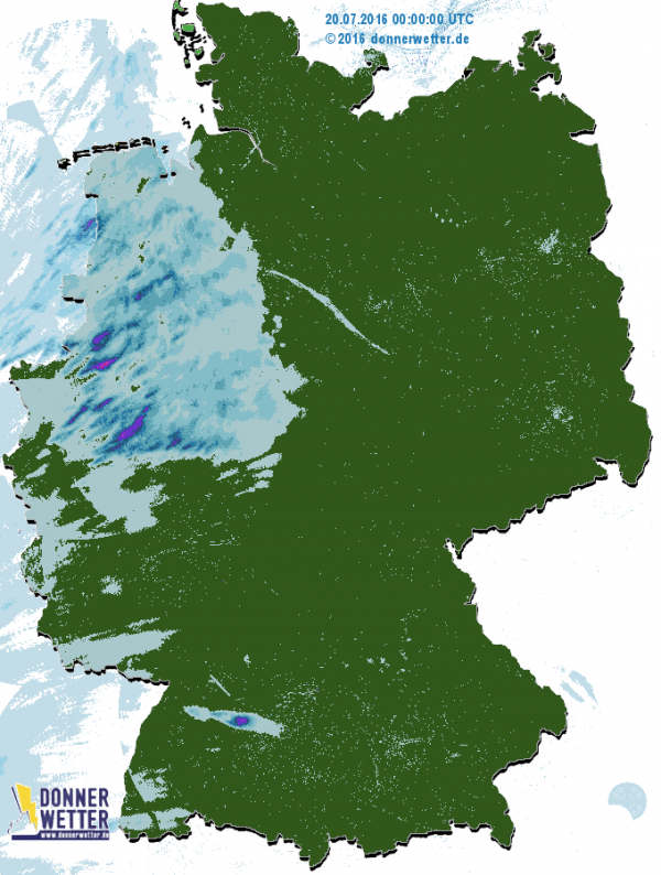 Besonders über NRW und Niedersachsen tobten gestern Gewitter. Heute morgen gibt es im Süden und Westen neue Schauer und Gewitterzellen.
