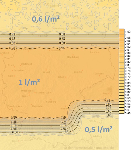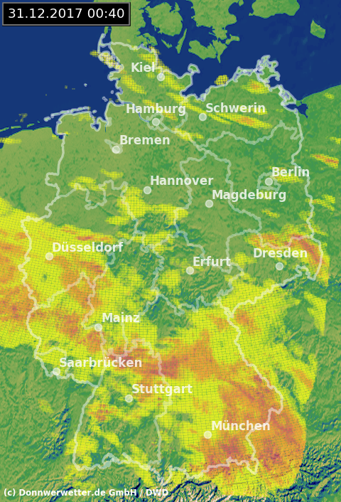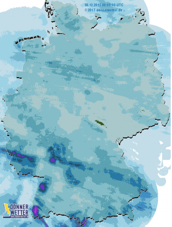 Über den Jahreswechsel und auch während der ersten Woche des Jahres 2018 überqueren uns von Westen weitere Schlechtwettergebiete im Wechsel mit kurzen Pausen. In etwas kälteren Abschnitten kann es im Bergland schneien, sonst fällt Regen. Außerdem drohen zwischendurch Sturmböen. Die Niederschlagsmengen liegen dabei pro Tag meist zwischen 5 und 20 Liter pro Quadratmeter, regional auch mehr. In Folgedessen werden die Pegelstände der Flüsse kontinuierlich weiter steigen.