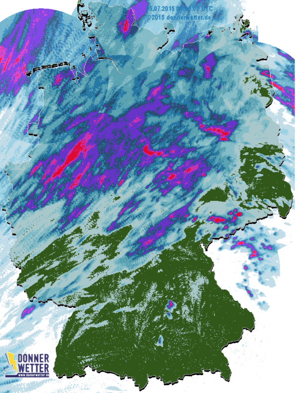Hitzewochenende endete mit großem Knall - hier die Tagesniederschlagsmengen vom 05.07.2015.