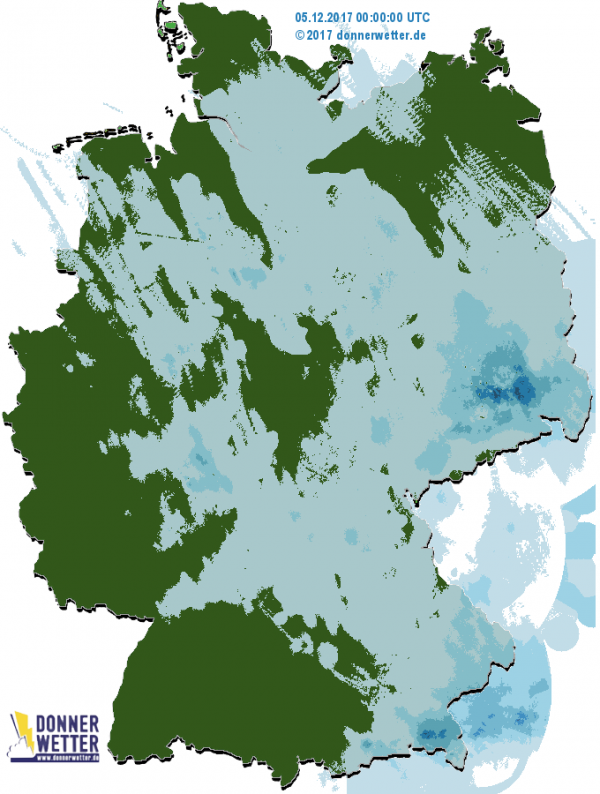 Heute fällt im Nordosten, sowie über den Mittelgebirgen etwas Regen oder Sprühregen. Die Mengen liegen jedoch meist unter 3 Liter pro Quadratmeter.