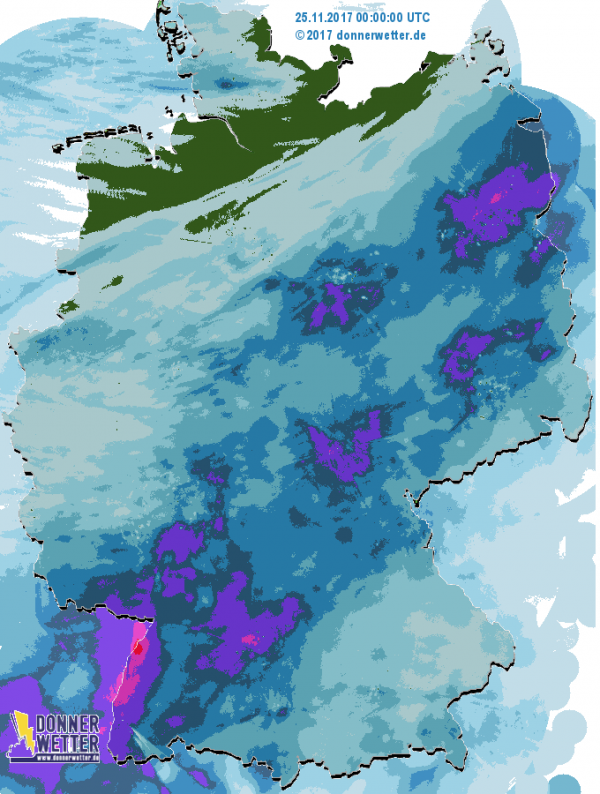 Heute fallen örtlich Regen- Schnee(regen)- und Graupelschauer. Die Niederschlagsmengen liegen dabei zwischen 1 und 5 Liter pro Quadratmeter. Im Alpenvorland und im Nordseeumfeld können aber auch höhere Mengen erreicht werden.