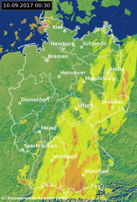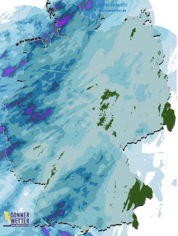 Heute kommt es im östlichen Baden-Württemberg, sowie in Teilen Bayerns zunächst noch zu Regenfällen mit Mengen von etwa 5 bis 15 Liter pro Quadratmeter, am Alpenrand örtlich auch über 20 Liter pro Quadratmeter, am Nachmittag treten noch einzelne Schauer auf. In den anderen Gebieten Deutschlands stellt sich eine kurze Wetterberuhigung ein, bevor in der Nacht auf Montag von Nordwesten mit deutlich auffrischendem Wind das nächste Regengebiet heran zieht.