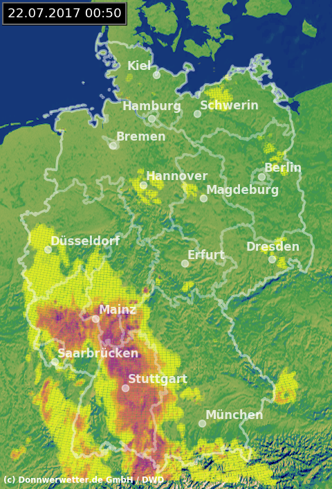 Radarbild von Samstag, 22-07.2017 um 00.50 Uhr