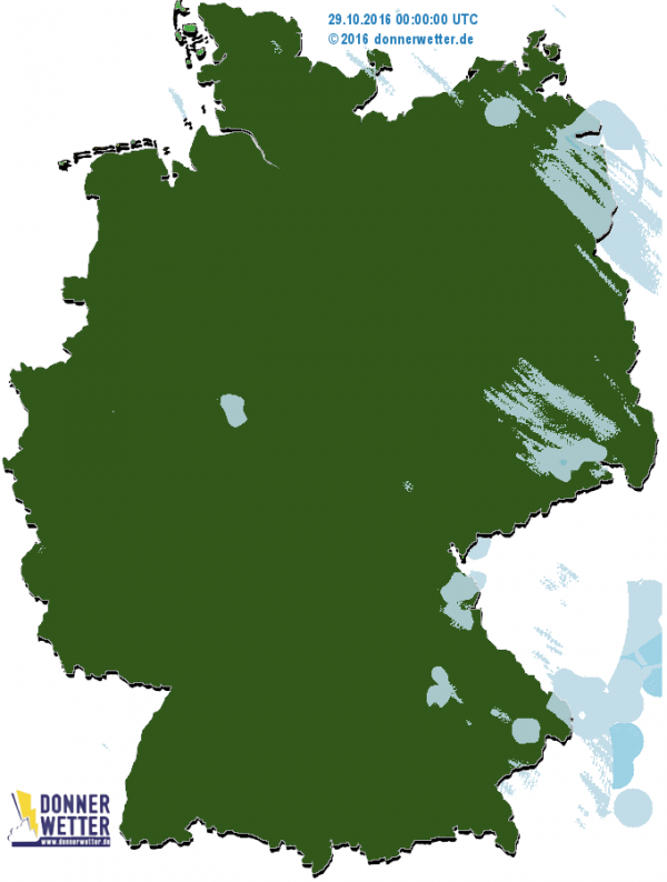 Ein Hochdruckgebiet liegt genau über Deutschland. Tiefausläufer streifen den Norden und Osten und bringen wenig Feuchtigkeit. Auf dem Regenradar von gestern ist daher geringer Regen im Osten und Norden zu sehen. Heute ist die Lage ähnlich. Im Südwesten bleibt es trocken.