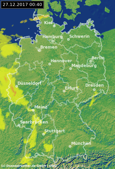 Radarbild von Mittwoch, 27.12.2017 um 00.40 Uhr