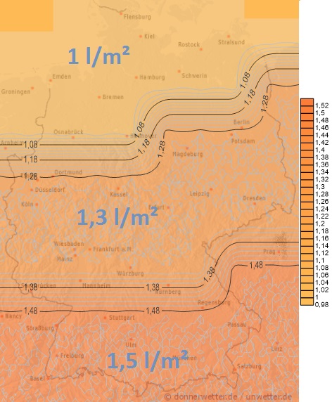 Achtung, in der Nacht auf Samstag kann es im Südosten kräftig schütten, dabei können Niederschlagsmengen von teilweise über 50 Liter pro Quadratmeter fallen. Es drohen wieder Überschwemmungen.