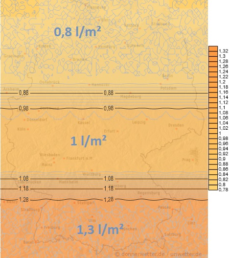 Am Freitag zieht von Nord nach Süd eine Regenzone über Deutschland hinweg, dahinter treten noch örtliche Schauer auf. Dabei sind Niederschlagsmengen zwischen 1 und 10 Liter pro Quadratmeter zu erwarten.