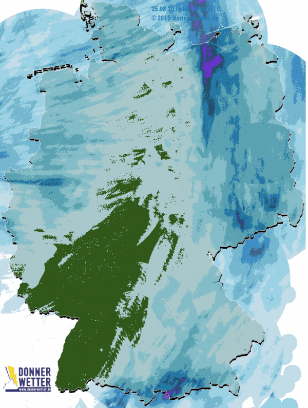 Gestern gab es in Ostdeutschland noch größere Regenmengen des abziehenden Tiefs. Im Westen und Süden waren nur wenige Schauer unterwegs.