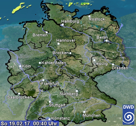Das Radarbild von Deutschland zeigt momentan noch keine Niederschlagsechos im Land. Allerdings erkennt man schon erste schwache Signale über der Nord- und Ostsee. Sie gehören zu einer Warmfront, die allmählich auf den Nordwesten übergreift und ab den Frühstunden leichten Regen und Sprühregen auslösen kann. Diese Front wird dann im Tagesverlauf weiter ins Landesinnere vordringen und für meist leichten Regen oder Sprühregen sorgen. Bis zum Abend kommt die Front unter Abschwächung bis in die Mitte Deutschlands voran.