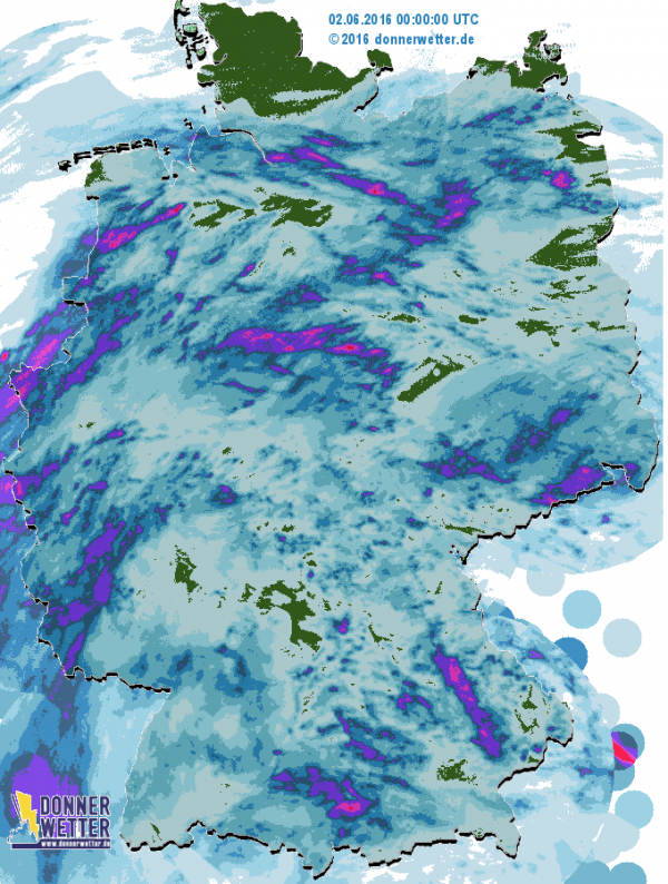 Das Frederike zieht weiterhin seine Kreise über Deutschland. Es gab wieder Schauer- und Gewitterstraßen mit über 50 l/m2. Auch heute wird es wieder lokal sehr nass.