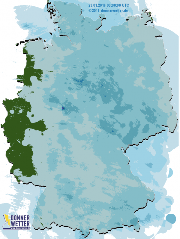 Der Eisregen von gestern im Regenradar. Bis zu 10 l/m2 Niederschlag gab es durch den milden Regen auf gefrorenem Boden.