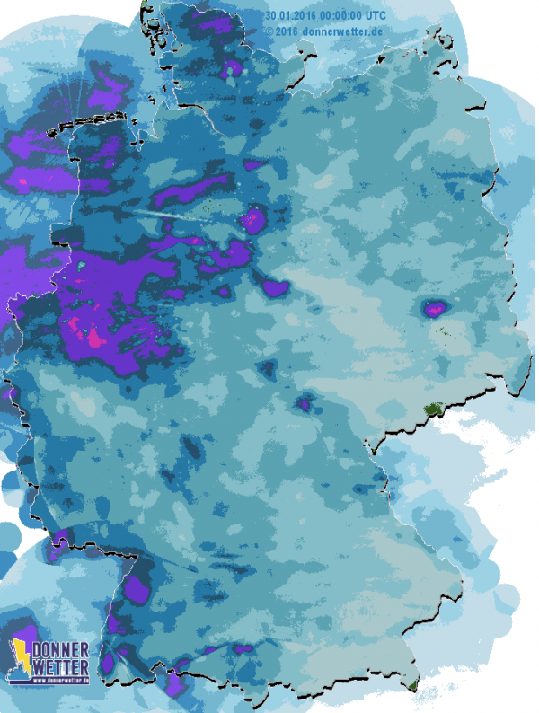 In ganz Deutschland gab es wieder Regen. Die Regenmenge erreichte im Westen und Norden von Deutschlans bis zu 30 l/m2. Lokal an den Mittelgebirgen wurden sogar mehr als 30 l/m2 verzeichnet. Aktuell regnet es im Süden sehr stark.