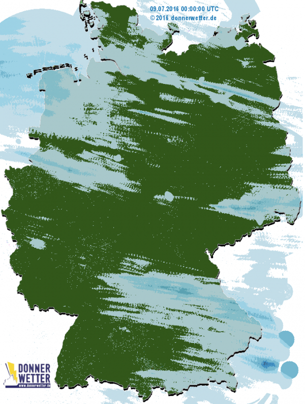 Im weiteren Tagesverlauf zogen dann von Westen her Ausläufer eines Tiefs über den Britischen Inseln nach Deutschland. Diese sorgten ab dem frühen Abend vor allem im Nordwesten der Republik für vereinzelte Schauer und zogen in der ersten Nachthälfte weiter gen Osten. Auch hier blieben die Niederschlagsmengen gering und lagen in der Regel unter 5 Litern pro Quadratmeter.