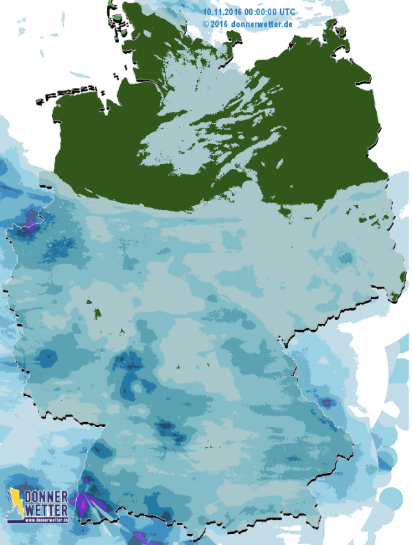 Der Norden blieb gestern zeitweise trocken, bzw es regnete kaum. Über den Mittelgebirgen gab es 10 bis 20 l/m2 Regen. Das Tief zieht heute ab und wird nochmals an den Alpen länger Regen und Schnee bringen. Bis zu 10 l/m2 sind auch heute nochmals möglich. Am Wochenende wird es dann aber trocken.