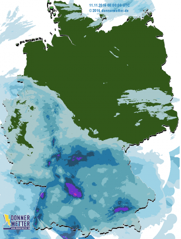 Nur der Süden und die Mitte bekamen gestern noch größere Regen ab. In Franken waren es 20 l/m2. An den Alpen fielen bis heute morgen größere Regenmengen, während es in der Mitte kaum mehr als 1 l/m2 waren.