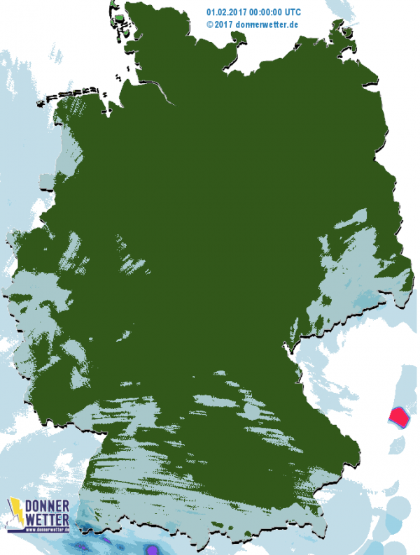 Am Abend erreichte dann von Frankreich kommend ein Regenband den Westen des Landes. Dieses zog im Lauf der Nacht ostwärts über die Republik hinweg und erreichte bis zum Morgen auch die neuen Bundesländer. Dahinter trocknete es bereits wieder ab.