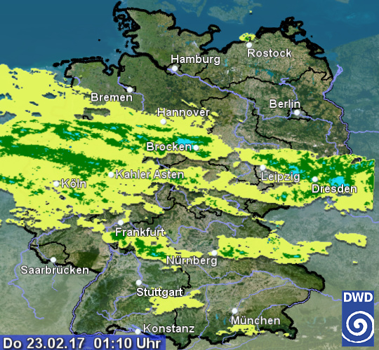 Radarbild vom Donnerstag, 23.02.2017 um 01.10 Uhr