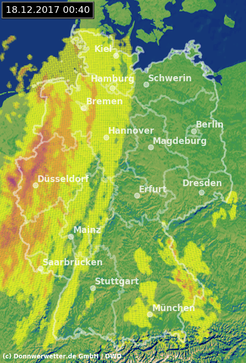 Heute fällt zunächst in der Mitte und im Südwesten Niederschlag der längere Zeit als Schnee fallen kann. Bei Niederschlagsmengen zwischen 5 und 15 Liter pro Quadratmeter und gebietsweise über 10 cm Neuschnee muss verbreitet mit Verkehrsbehinderungen durch Schneeglätte gerechnet werden. Am Vormittag geht der Niederschlag vor alle an Saar und Mosel in leichten Regen oder Sprühregen über. Zum Nachmittag klingt der Niederschlag größtenteils ab.