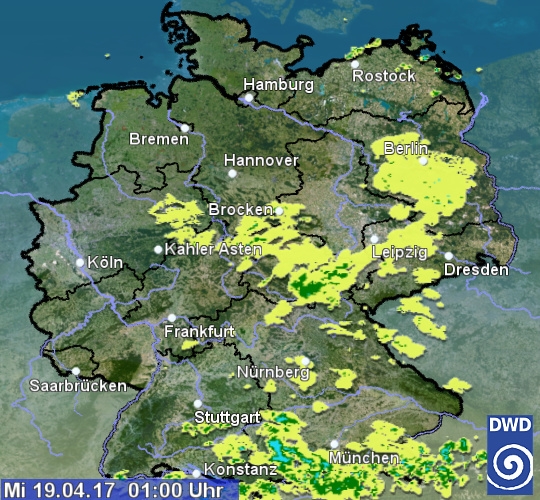 Radarbild von Mittwoch, 19.04.2017 um 01.00 Uhr