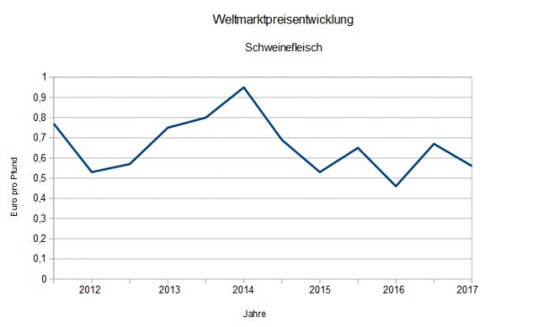 Zu den weltweit fünf größten Produzenten der Schweineproduktion zählen China, die USA, Deutschland, Spanien und Brasilien. Aus Tierschutzgründen wird heute immer mehr auf das Tierwohl geachtet, dennoch ist die Schweineproduktion immer mit Krankheitsrisiken verbunden. Im Jahre 2014 stieg der Preis für Schweinefleisch rapide an. Grund dafür war ein Schweinevirus, der entsprechend die Produktion schrumpfen ließ. Aktuell liegen wir wieder bei einem Durchschnittspreis von 0,56€ pro Pfund.