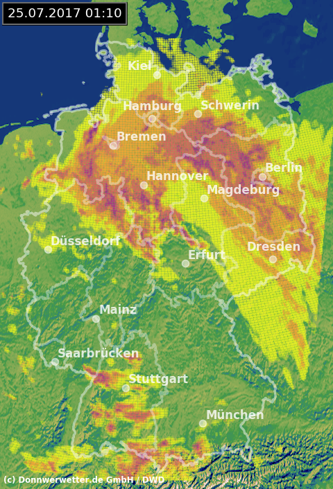 Die Tagesniederschlagssummen von Montag, 24.07.2017