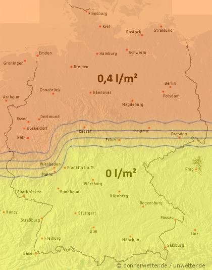 Unsere heutige Niederschlagskarte gleich einem Suchbild: Die winzigen Niederschlagsmengen, die am gestrigen Sonntag unter anderem ist Ostfriesland niedergingen, sind erst auf den zweiten Blick erkennbar.