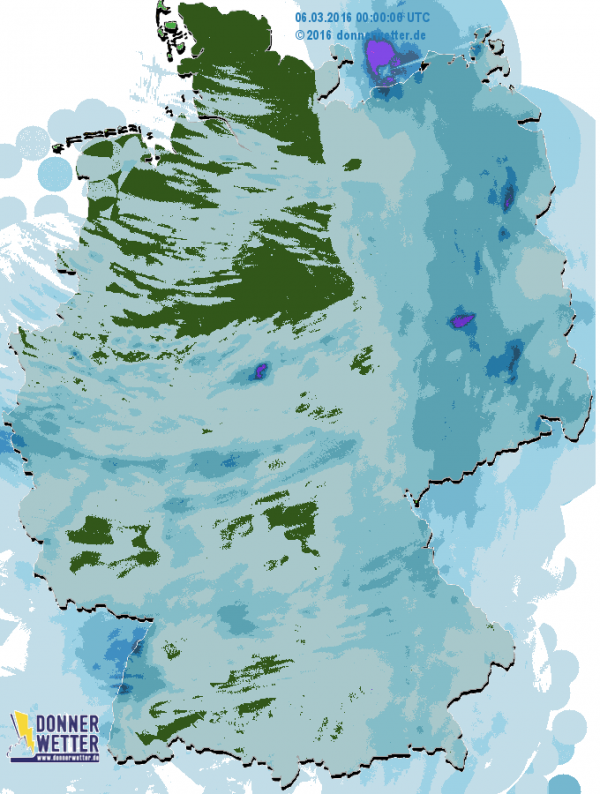 Gestern gab es verbreitet Schneeschauer und Regen. DIe Mengen lagen zwischen 5 und 15 l/m2 im Osten und bis zu 10 l/m2 in Schauern im Westen.