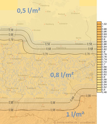 Von Südwest nach Nordost ziehende Niederschläge