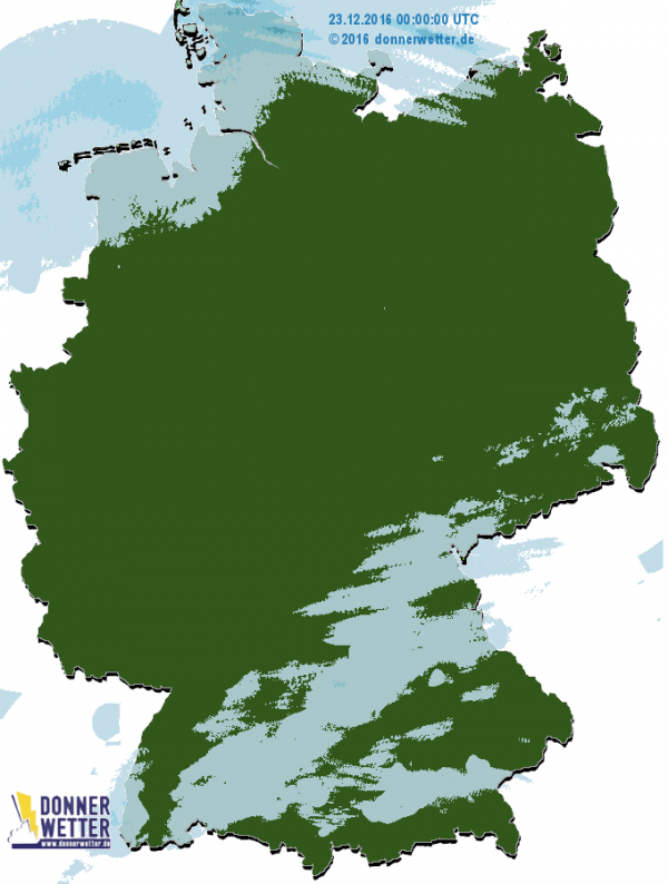 Das aktuelle Radarregensummenbild vom 23.12.2016 mit nur geringen Regenmengen im Norden und Süden von Deutschland: