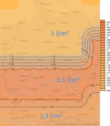 Von Samstag auf Sonntag überquert uns eine Kaltfront mit Regen oder Schauern von West nach Ost. Gebietsweise können dabei Niederschlagsmengen von über 10 Liter pro Quadratmeter fallen.