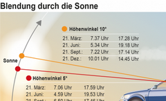 ![]() | Sonnenblendung - stark unterschätztes Unfallrisiko 20.10.2025 Zu welchen Jahres- und Tageszeiten die Blendgefahr besonders hoch ist und wie Ihr eine kurzzeitige 'Sonnenerblindung' vermeiden könnt! | |
