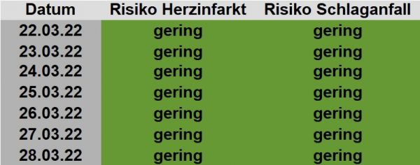Die Schlaganfall- und Herzinfarktrisiken bis 28.03.2022