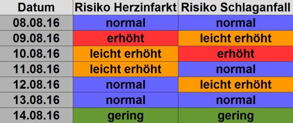 Zur Wochenmitte gelangt deutlich kühlere Luft nach Deutschland. Dadurch steigt das Risiko für Schlaganfälle und Herzinfarkte. Anschließend erwartet uns wieder mehr Hochdruck und etwas wärmere Luft. Das Risiko fällt...