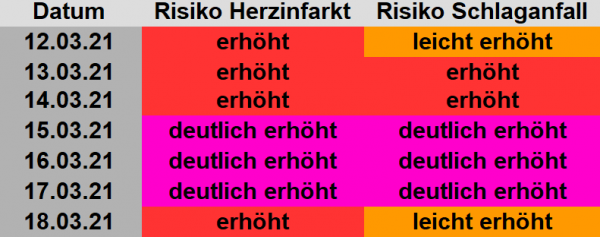 Die Schlaganfall- und Herzinfarktrisiken bis 18.03.2021