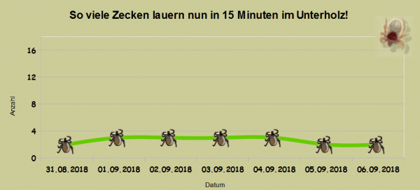 Die Trockenheit, vor allem in der kommenden Woche, bremst die Zeckenentwicklung in Deutschland aus. Ganz sorglos sollte man den herbstlichen Spaziergang durch den Wald aber nicht antreten, denn noch immer tauchen im Unterholz etwa drei Exemplare in 15 Minuten auf..
