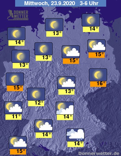 Die Temperaturen sinken in der Nacht auf Werte um 16 Grad in Dresden und um 11 Grad im Saarland.